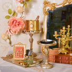 シャビーなゴールドシルバーミックスカラーで、アンティークな雰囲気です。