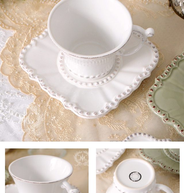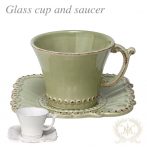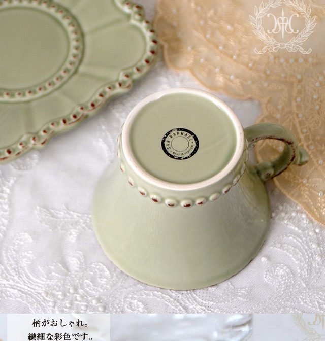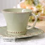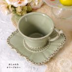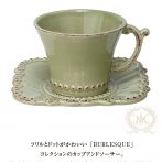 バーレスク カップ&ソーサー BP017 オリーブ ホワイト【ハルモニア ティーカップ アンティーク セット 陶器 ボルダロ・ピニェイロ ポルトガル製 母の日】