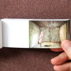 「うさみみ」が天井から伸びたロープを引っ張ると、 部屋の扉がつぎつぎ開いて、回転しながら落下するという仕掛け。 ジェットコースターのような、スピード感あふれる画面は、 繰り返しパラパラするほどやみつきに!