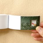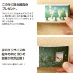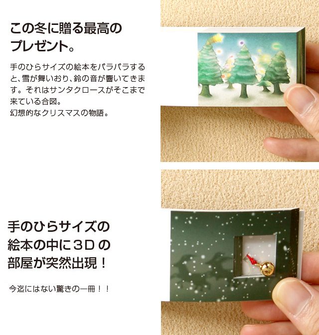 手のひらサイズの絵本をパラパラすると、 雪が舞いおり、鈴の音が響いてきます。