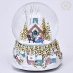 カラフルなヨーロッパの街並みをデザインしたオルゴール付きスノードーム。