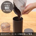 広口なので、コーヒーの詰め替えが簡単です。中細挽きの場合、容量約160gです。