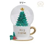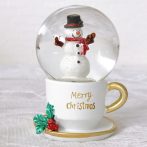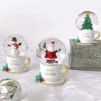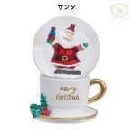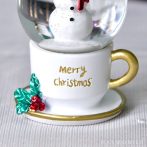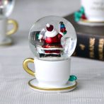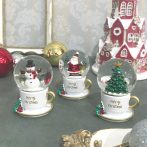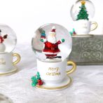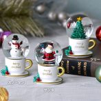 白いティーカップに乗ったかわいいクリスマスモチーフのミニスノードームオブジェ