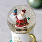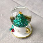 カップにはMerryChristmasのメッセージとヒイラギの飾りが付いていて、逆さまにするとドームの中に金色の粉雪が舞います。