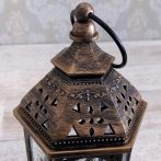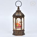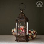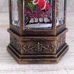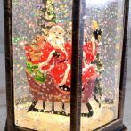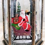 クラシカルな六角形のランタンにソリに乗ったサンタクロースが入ったおしゃれなクリスマスオブジェ。