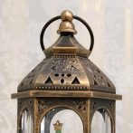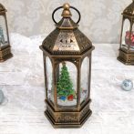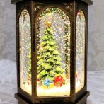 クラシカルな六角形のランタンに大きなクリスマスツリーが入ったおしゃれなクリスマスオブジェ。