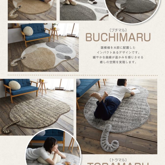 猫模様 ラグ ブチマル トラマル 130×185【日本製 滑り止め 防ダニ 床暖対応 ペット 抜け毛 ペット臭 消臭】スミノエ