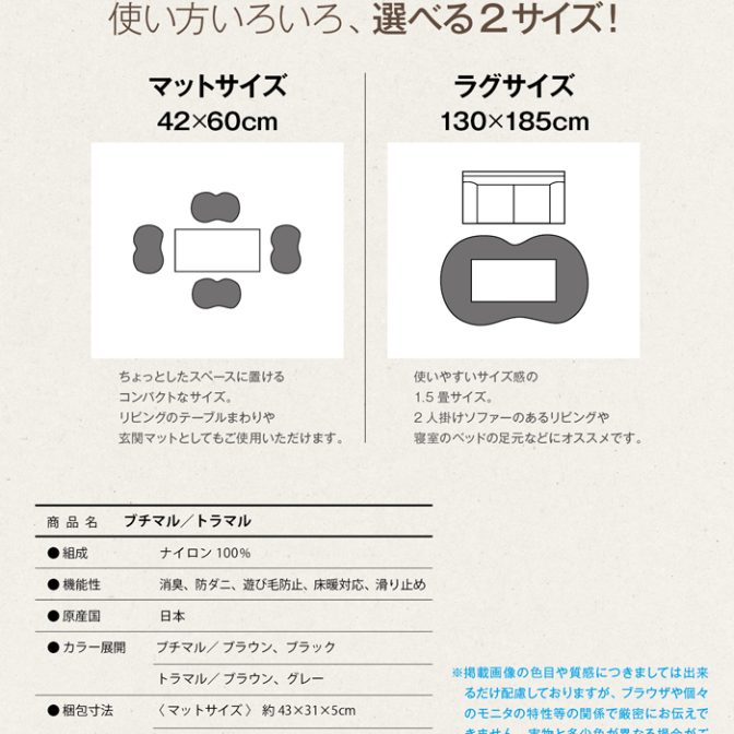 遊び毛なし、床暖対応、すべり止め、防ダニ