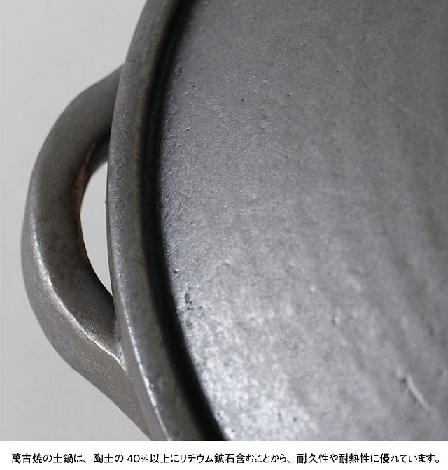 萬古焼の土鍋は、陶土の40%以上にリチウム鉱石含むことから、耐久性や耐熱性に優れています。