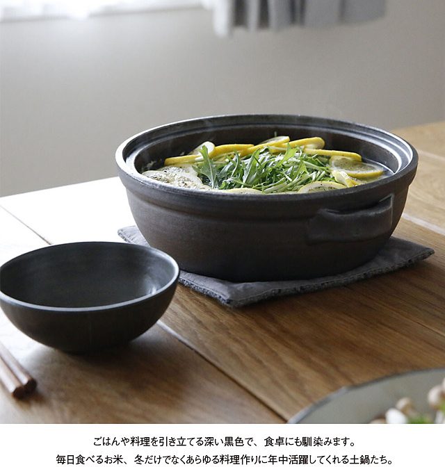 ごはんや料理を引き立てる深い黒色で、食卓にも馴染みます。 毎日食べるお米、冬だけでなくあらゆる料理作りに年中活躍してくれる土鍋たち。